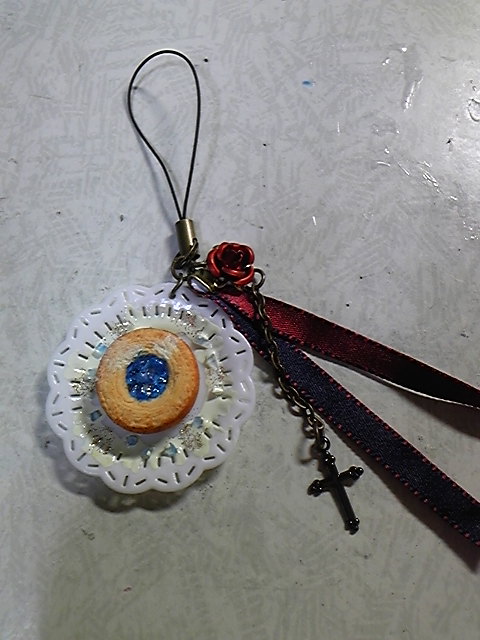 いつものように、レジン等を使って作ったネックレスとストラップがあります。