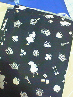 アリス柄の布に一目惚れして、衝動買いしてしまった。スカートでも作ろう~(´∀`)どんなデザインにしようかな~。