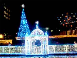 西鉄裏の公園にイルミネーションがしてあって、見てきました~。すごい綺麗だったですよー!