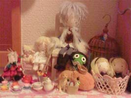 この前作った即席ダンボール本棚の上。色々飾ってみたらメルヘン空間になりました(笑)ちょっと緑色のおかしいのも混ざってますが、気にしない気にしない。