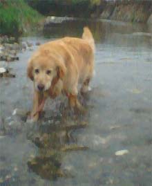 帰った日に、散歩途中で川で水遊び。